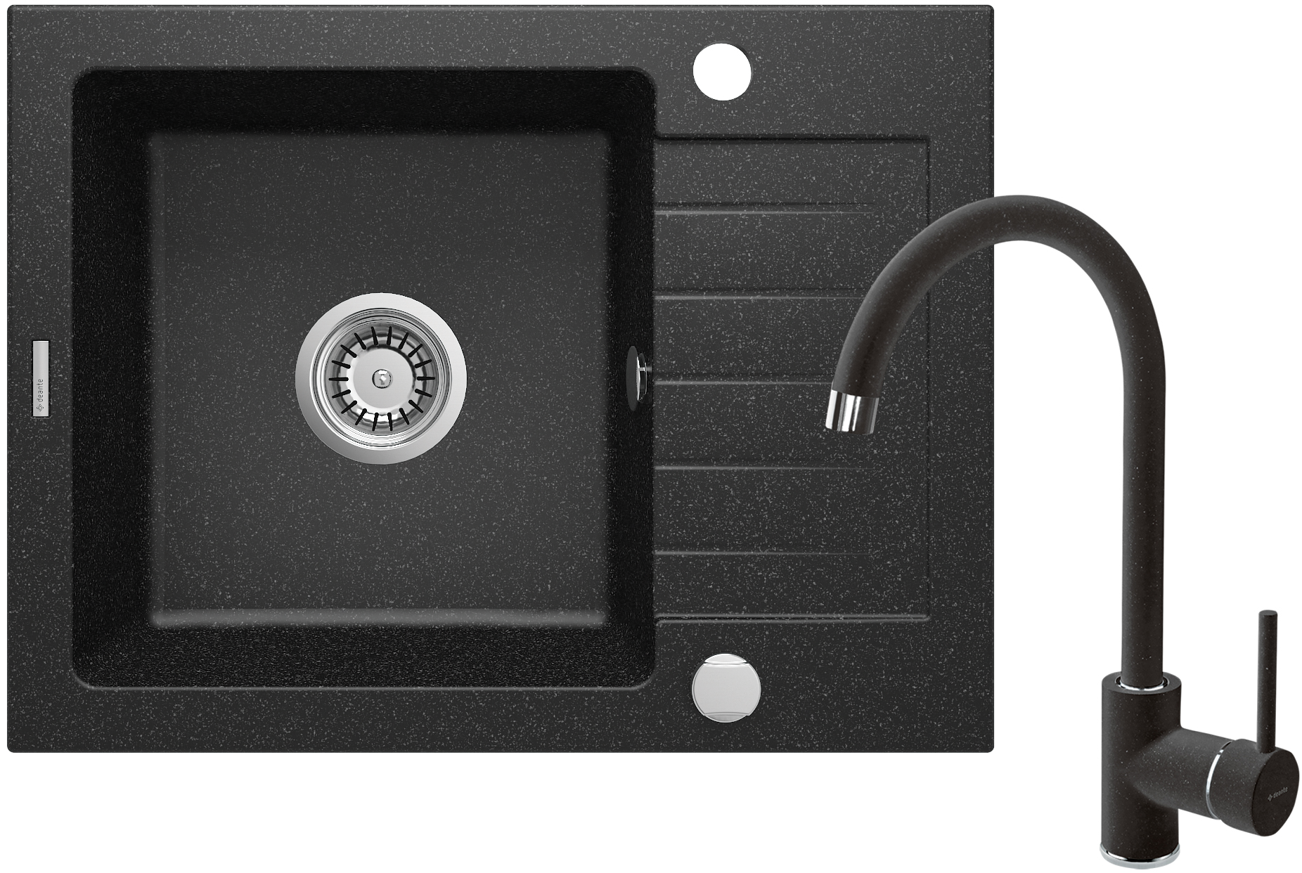 Granitowy zlewozmywak 1-komorowy Zorba z jedną, przestronną, prostopadłościenną komorą i krótkim ociekaczem to produkt, który doskonale prezentować się będzie w minimalistycznych lub skandynawskich aranżacjach kuchni. Elegancka, grafitowa barwa będzie efektownie kontrastować z jasnym, kamiennym lub kompozytowym blatem, bądź idealnie wtopi się w czarne otoczenie dla stylowego, monochromatycznego efektu, a metaliczny połysk, pochodzący od drobin aluminium wprowadza element ekstrawagancji. W komplecie znalazła się także efektowna, stojąca bateria zlewozmywakowa z podwyższonym korpusem i wylewką w kształcie litery „U” w pasującym, grafitowym kolorze, która podkreśli minimalistyczny charakter stylizacji. Prezentowany tu zlewozmywak wykonany został z granitu i charakteryzuje się wszystkimi zaletami typowymi dla tego niezwykle twardego i odpornego na użytkowanie materiału. Należy do nich odporność na przebarwienia, zarysowania, szok termiczny, temperaturę 250 stopni jak i uderzenia. Ponadto zlewy z kolekcji posiadają właściwości hydrofobowe, co oznacza, że ich powierzchnia nie tylko nie przepuszcza cząsteczek wody, ale także je odpycha, dzięki czemu są dużo łatwiejsze do utrzymania w czystości. Wszystkie te zalety, jak również współczesny, ascetyczny design, eleganckie kolory i uniwersalny charakter sprawiły, że kolekcja zlewozmywaków Zorba wyróżniona została tytułem finalisty konkursu Dobry Wzór 2014 r.