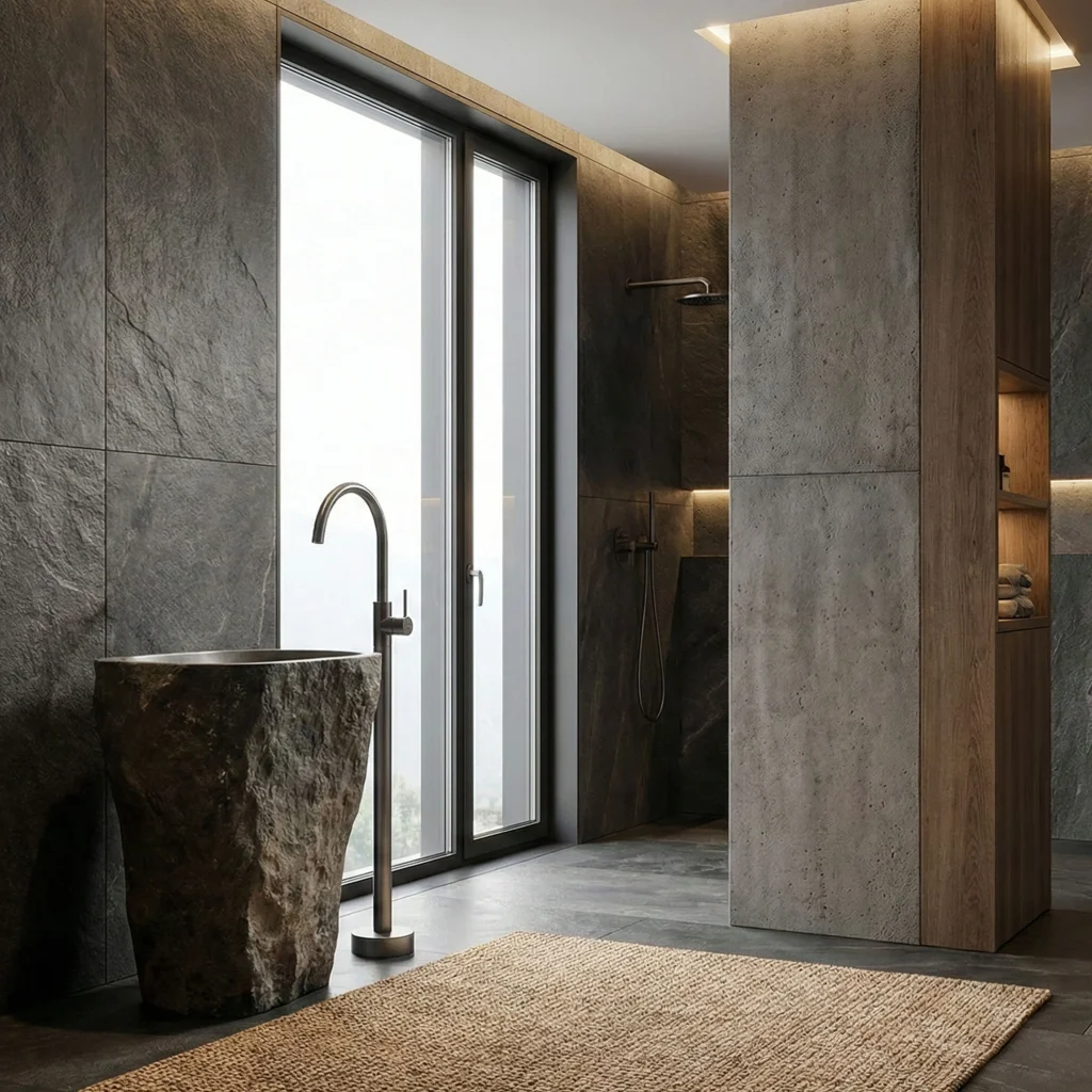 Złota armatura nie jest przesytem – o ile wybierana jest świadomie. W 2026 roku liczy się nie sam kolor, lecz jego odcień, wykończenie i kontekst całej aranżacji. Szczotkowane, ciepłe złoto nadal pozostaje eleganckim i bezpiecznym wyborem. To już nie trend ,,na pokaz”, ale dojrzały detal, który podnosi charakter łazienki i nadaje jej bardziej wyrafinowany wygląd.